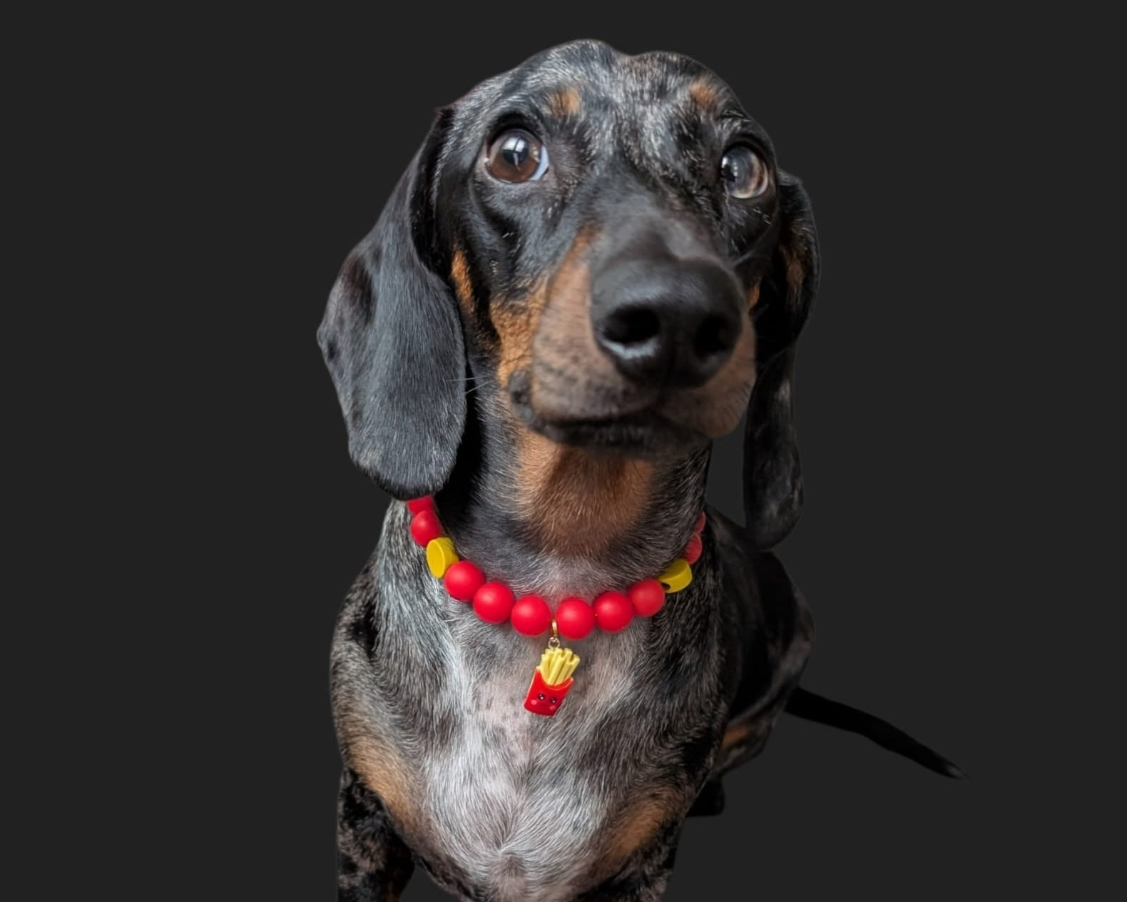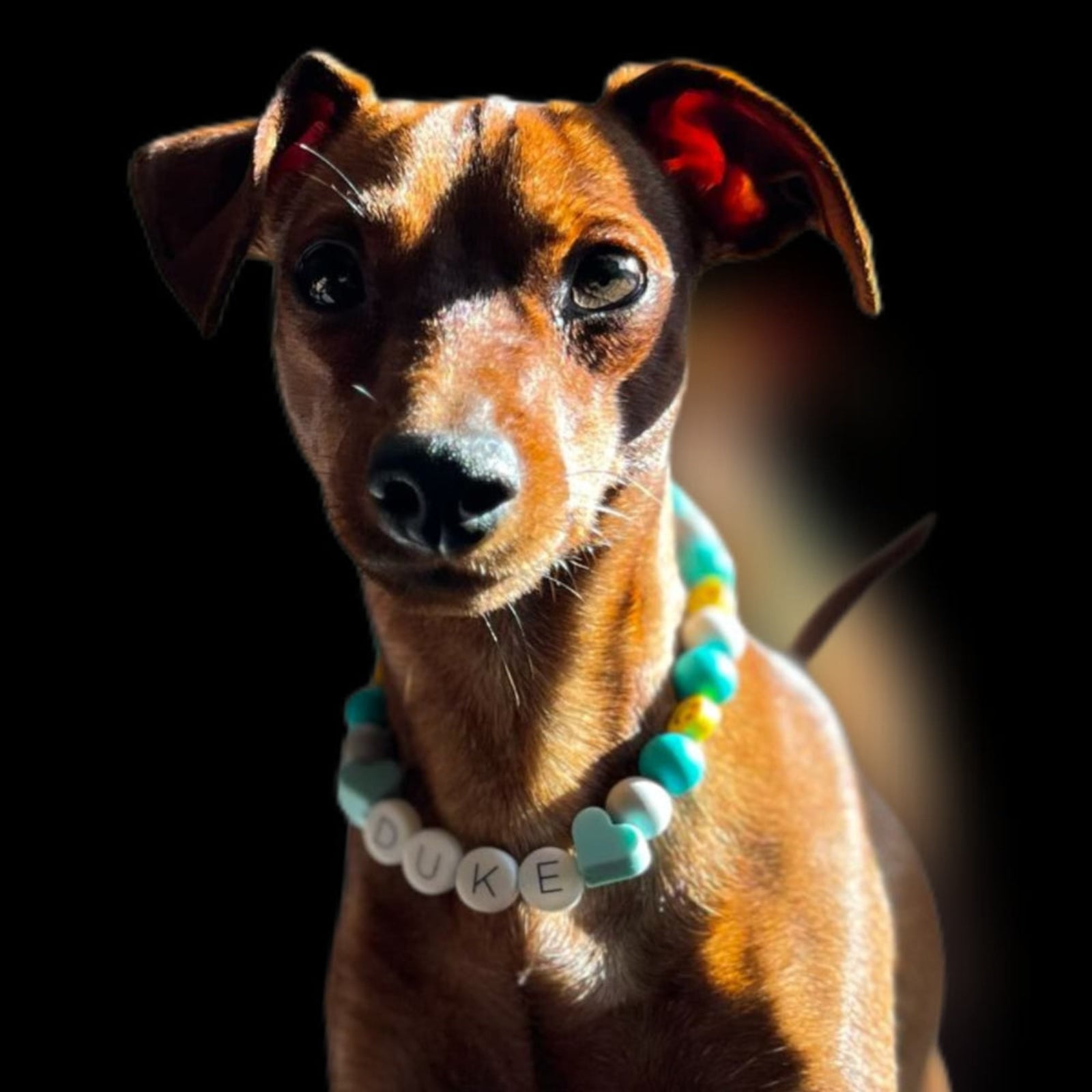 El hilo que usamos para los collares es elástico con varias hebras internas para asegurarnos de que sea lo suficientemente cómodo para ellos y resistente.